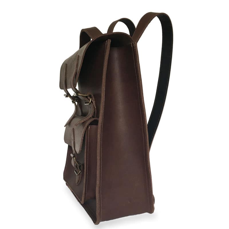 Le cuir choisi pour ce sac à dos vintage, est un cuir gras plein fleur. Il s’agit d’un cuir de vachette robuste et graissé au moment du tannage. Il ne craint pas les intempéries et se patinera tout au long de sa longue existence.