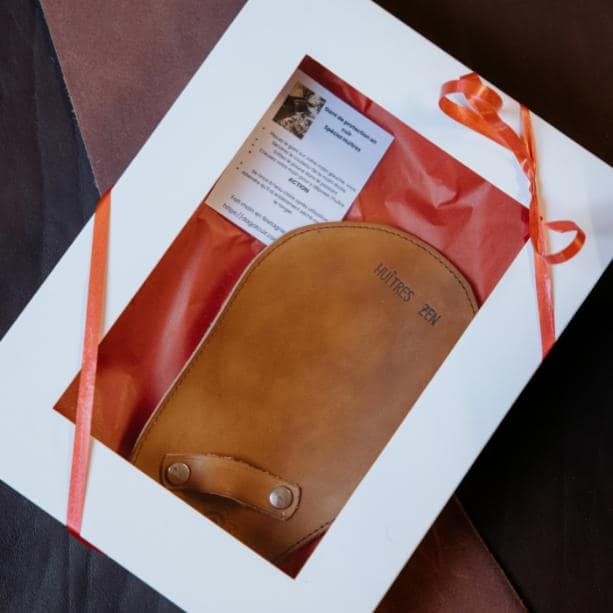 Coffret artisanal composé d’une manique de protection en cuir véritable. Fabriqué à la main à Rennes, la manique robuste et élégante permet d’ouvrir les huîtres en toute sécurité. Une idée cadeau premium pour les amateurs de gastronomie et de beaux objets.