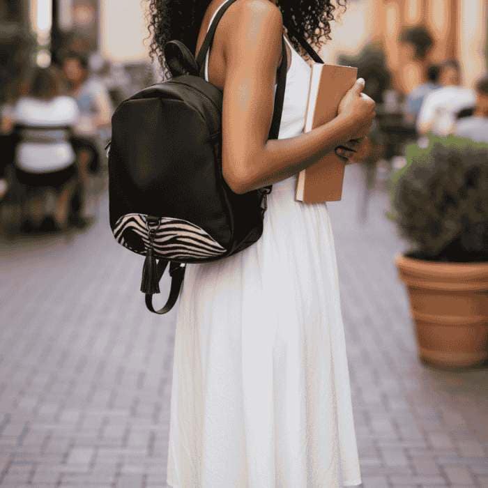 **Enfin, en mode sac à dos**, il se transforme facilement grâce au système de mousquetons avec des bretelles ajustables, offrant un confort optimal pour les journées actives. Ce design ergonomique permet de répartir le poids de manière équilibrée, tout en maintenant un style élégant.