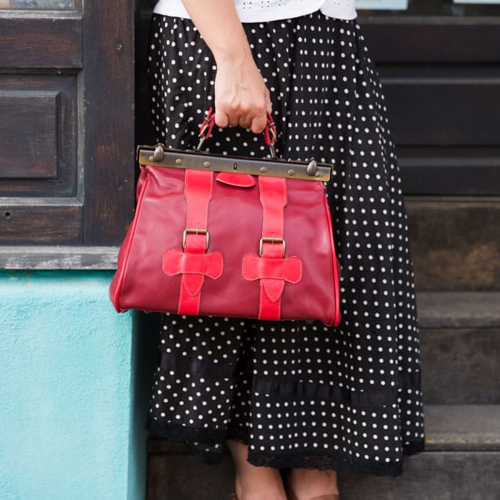 Le Mary Poppins est un sac en cuir porté main de style vintage. C’est le sac à main revisité, des infirmières, médecins et, bien sûr… de Mary Poppins. Son fermoir « square mouth » permet, grâce à sa grande ouverture, de profiter sans difficulté du volume du sac.